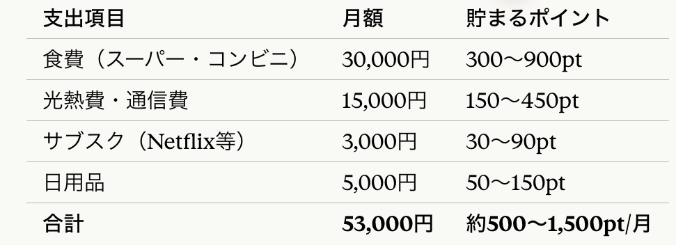 年間で6,000〜18,000円分のポイントが貯まる計算です。 バイトを1〜2回分浮かせられます。
